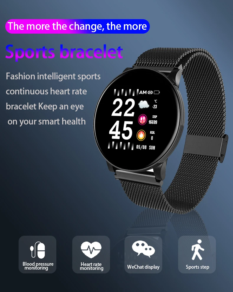 Addition Information of Cobrafly W8 smart band steel strip waterproof android IOS fitness tracker watch men women smart spo