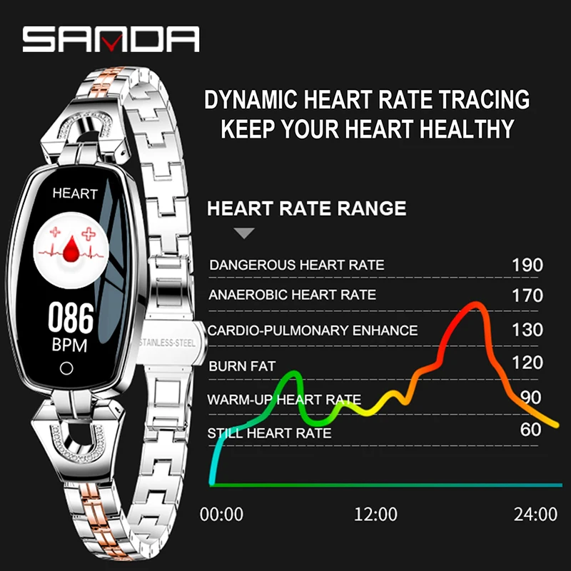 SANDA H8 Smart Wristwatches Women Dress Watches Lady Jewelry Waterproof Heart Rate Monitor Bluetoot